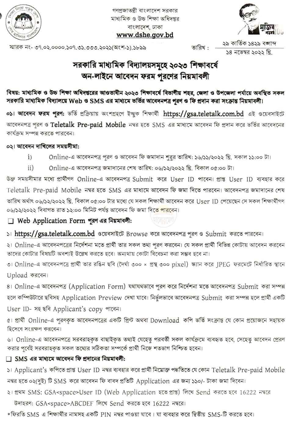 Directorate of Secondary and Higher Secondary Education already announced all govt. high school class 1-9 admission circular in 17 October 2023 for academic year 2024. This circular applicable for all division and district of the country including Dhaka city.