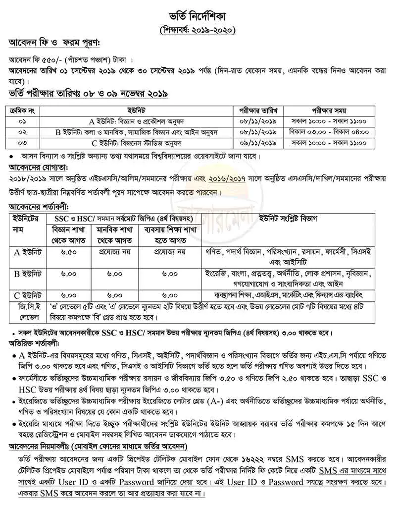 Application has been started on 01 September 2019 and it will be closed on 30 September 2019, Application fee TK. 550/-.