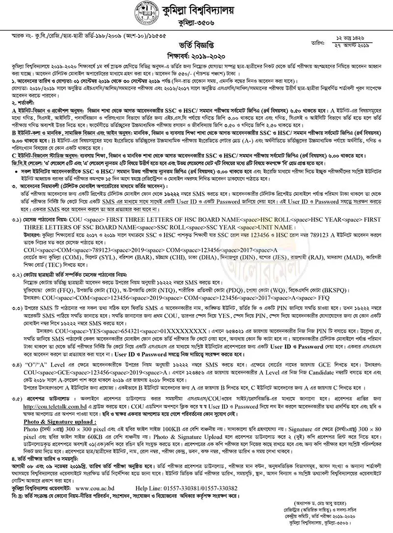 Comilla University admission test 2019-20 seat plan will be published from here. See the details of Comilla University admission test 2019-2020 from below as a attached file.