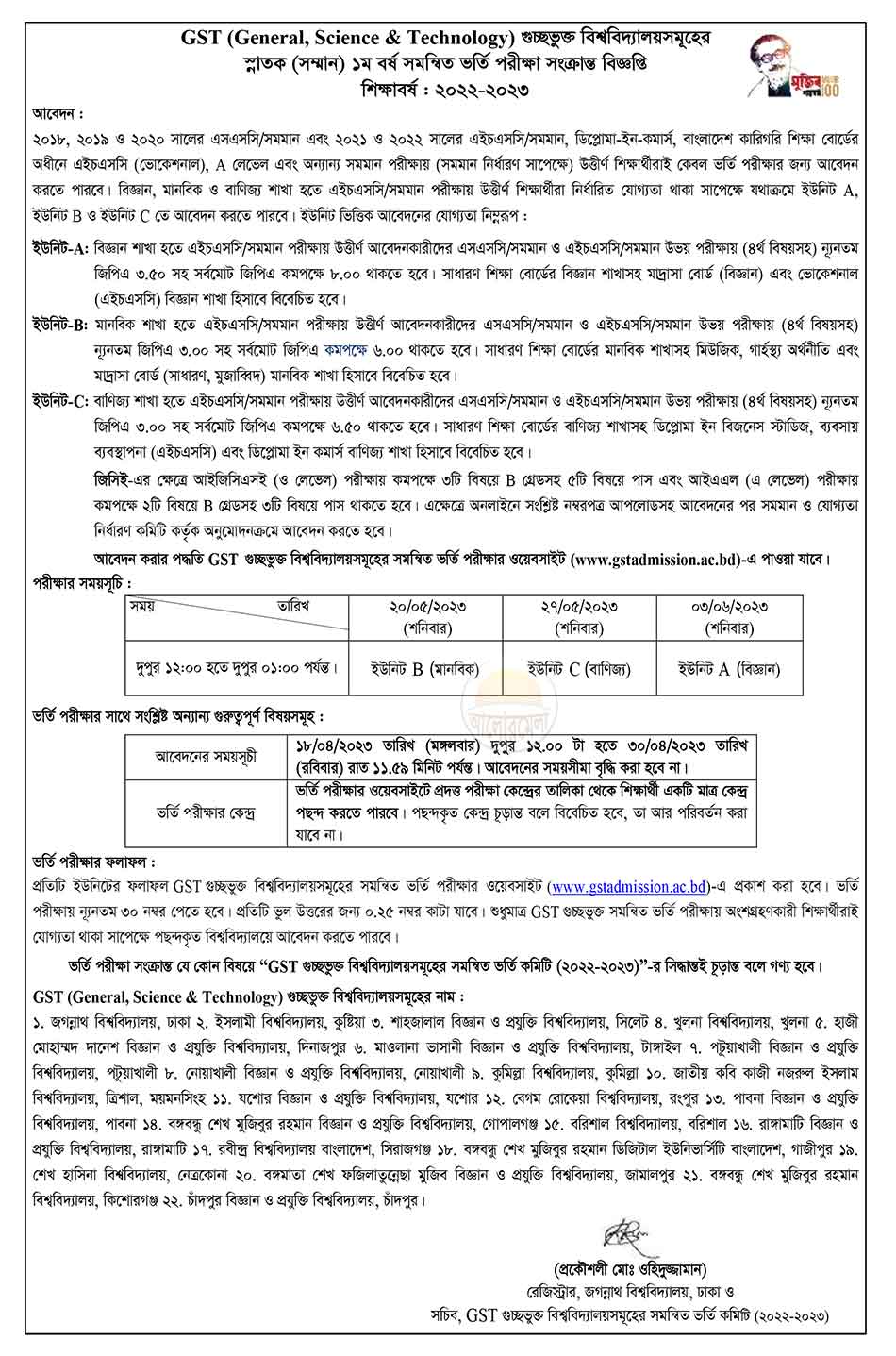 Admission committee of 24 public universities of Bangladesh has publish the GST cluster admission circular in 31 January 2024.