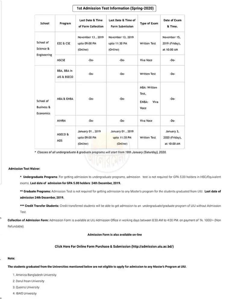 Elegible and interested candidates can apply online. Online application submission are available UIU website and here.