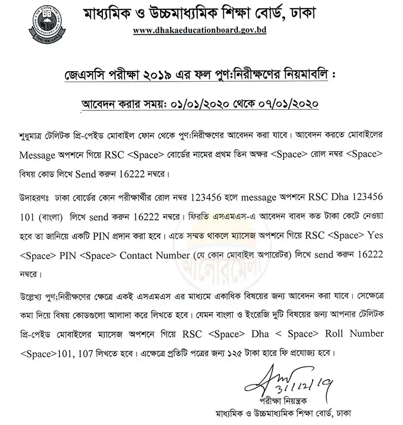 See the Junior School Certificate (JSC) and Junior Dakhil Certificate (JDC) exam result 2019 re-scrutiny process: