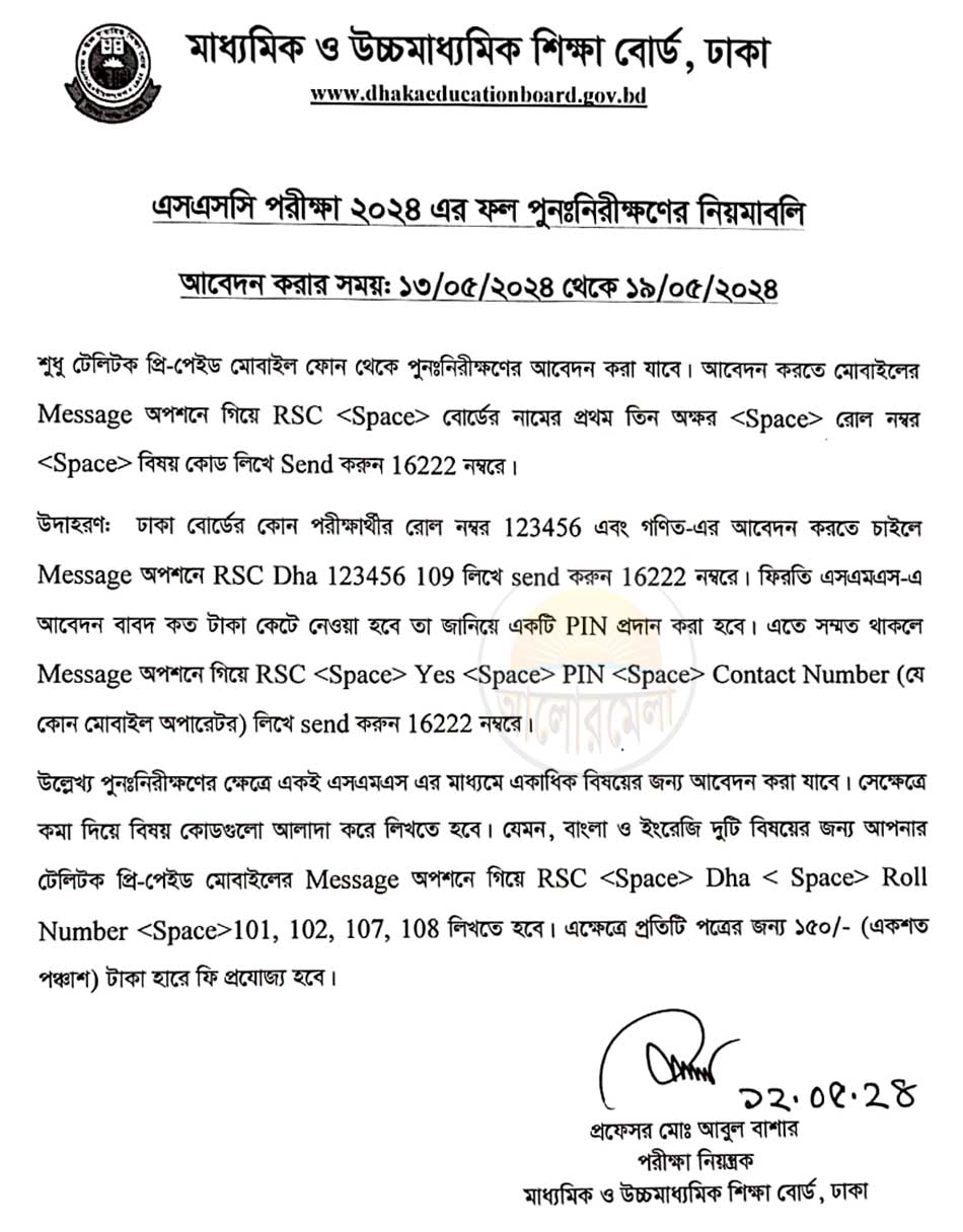 SSC result re scrutiny application starts from 13 May and it will be continued till 19 May 2024. The students who are not satisfied on their result on specific subject they can apply for re-scrutiny. If you submit re-scrutiny application the authority will recheck your exam sheet and your result can be changed if any mistake happened before.