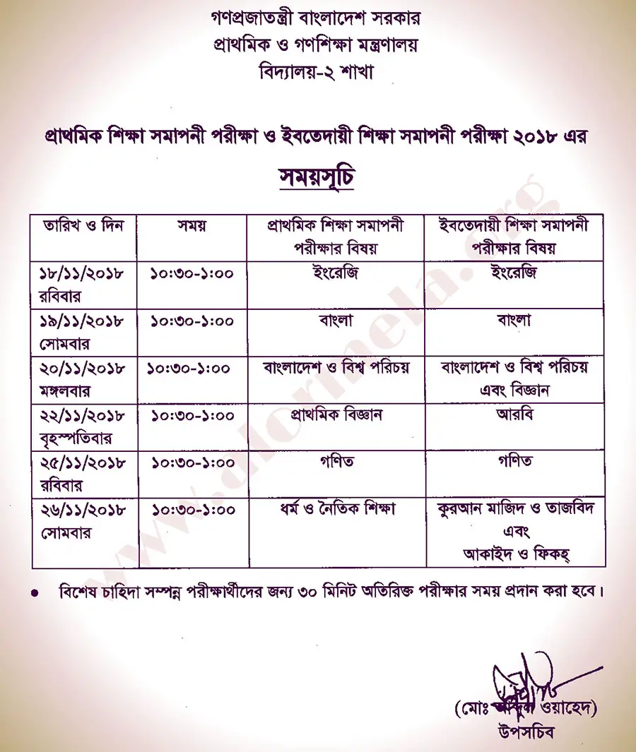 Exam Routine 2019: Primary Schools & Ebtetayee shomaponi or Final Exam Routine has been published on 22 August 2019. The final exam has been started from 17-11-2019 and end on 24-11-2019. This routine is also applicable for the students of madrashah (Ebtadayee).
