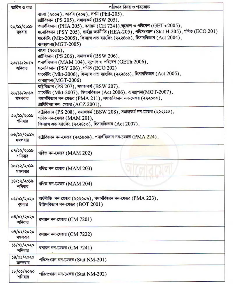 The honours 2nd year exam will be started from 04 November 2019 and the exam will be ended on 18 January 2020. This routine is applicable for the regular students of session 2017-18.