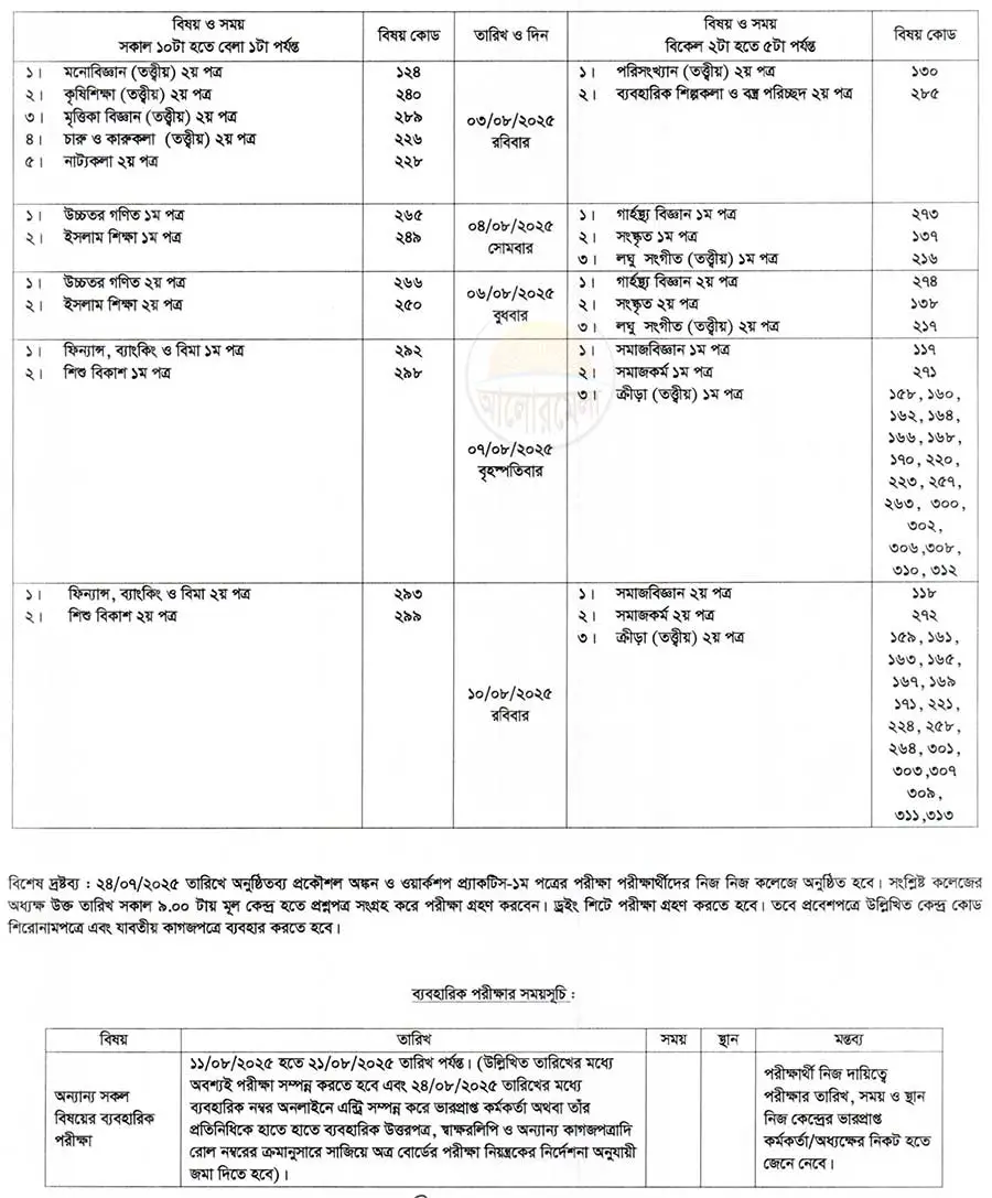 Ministry of education and Professor Dr. Khondokar Ehsanul Kabir had announced that the SSC and HSC exam will be taken under ful syllabus. The Exam details routine has been published in 19 February 2025.