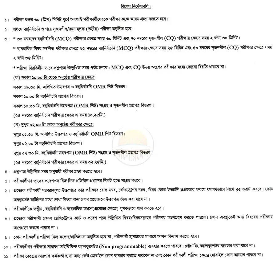 Nine general education board Dhaka, Chittagong, Rajshahi, Sylhet, Comilla, Jessore, Barishal, Dinajpur, Mymensingh board, Mardrasah and technical education boards exam will be started same days and same time.