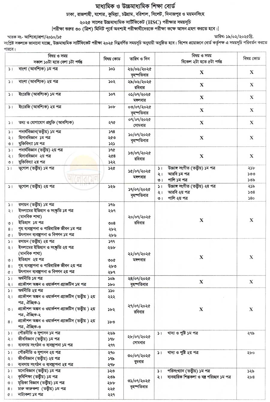 Board of Intermediate and Secondary Education is goint to start HSC exam from 26 June 2025. The HSC and equivalent exam will be held under full syllabus. The exam routine of nine general education boards already published on 19 February 2025 and it is available here.