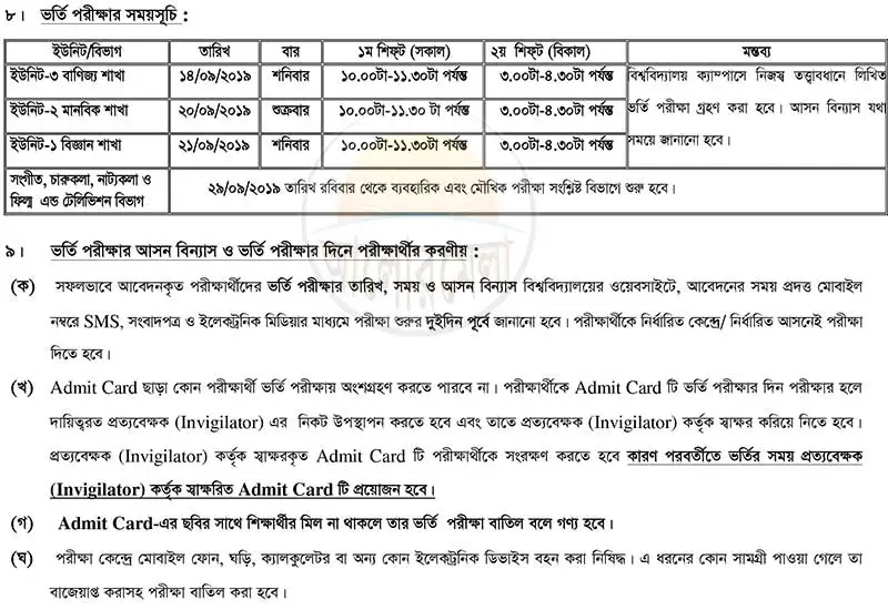 The university also published primary selection list in 22 August. Total 25 thousand candidates has been selected and they can apply to attend admission test. Check here for primary selection list.