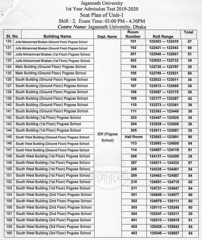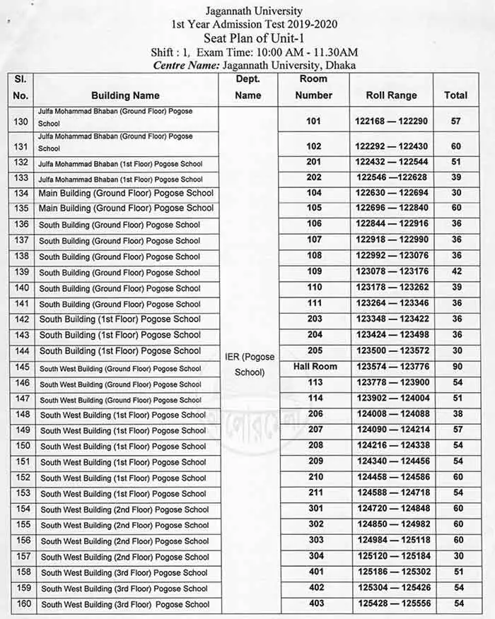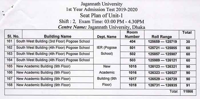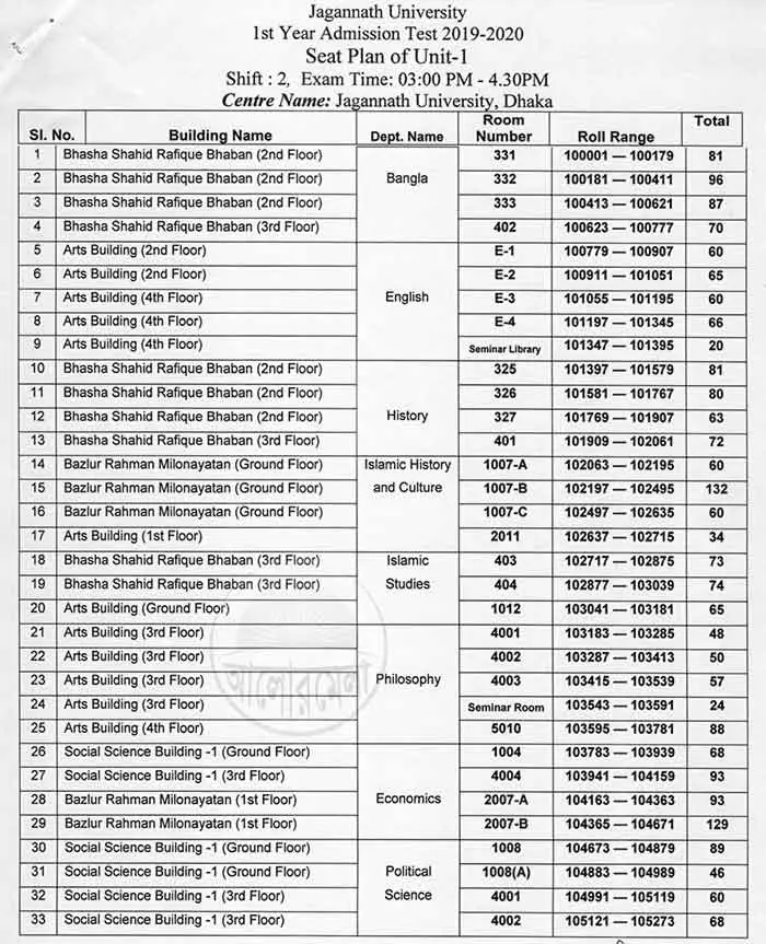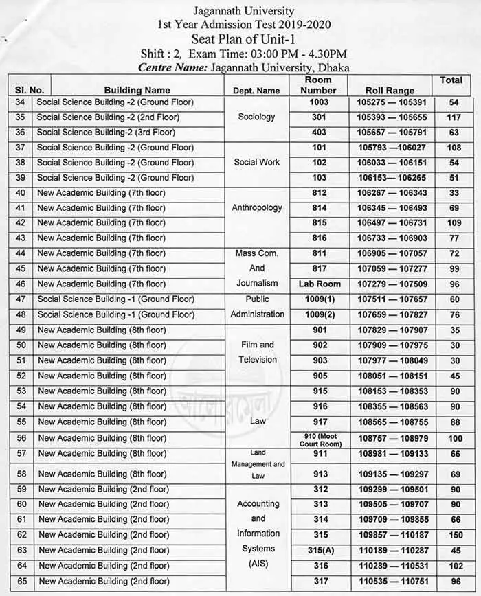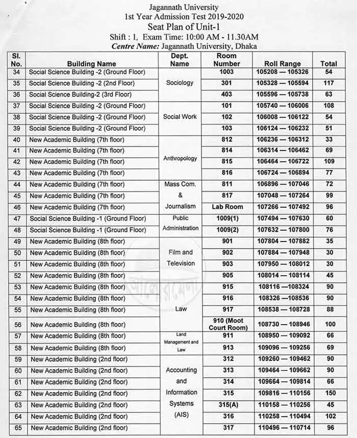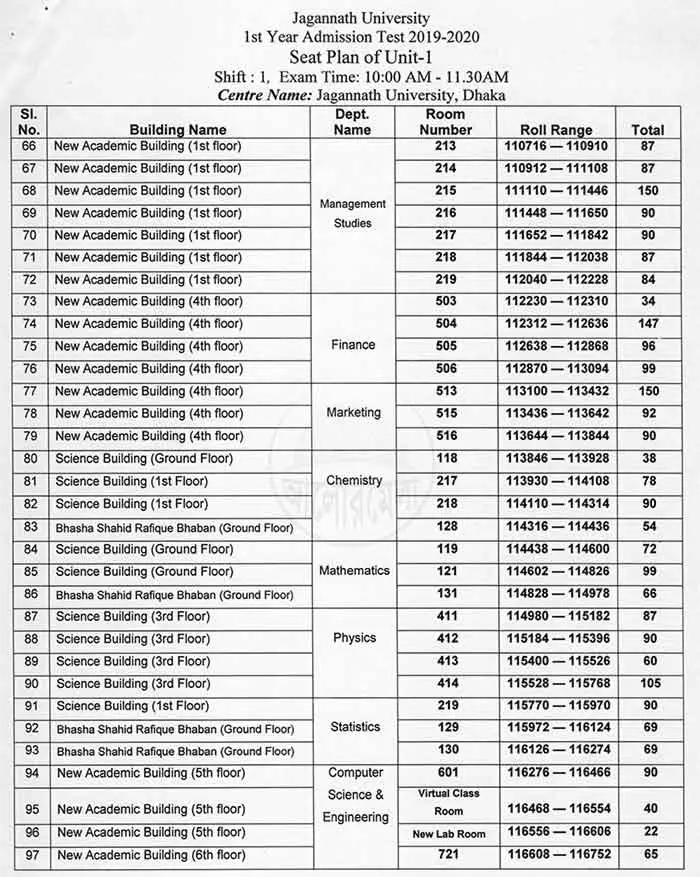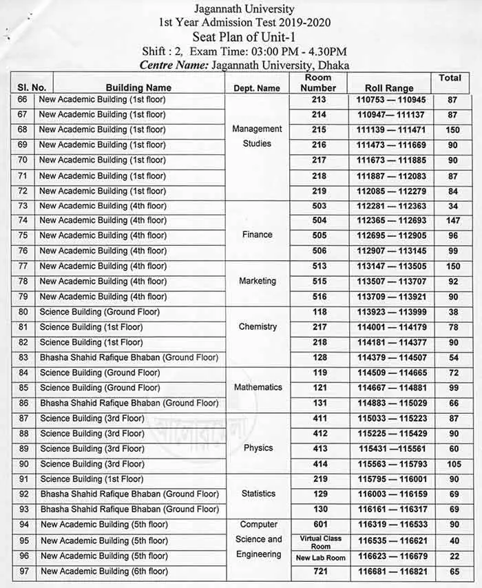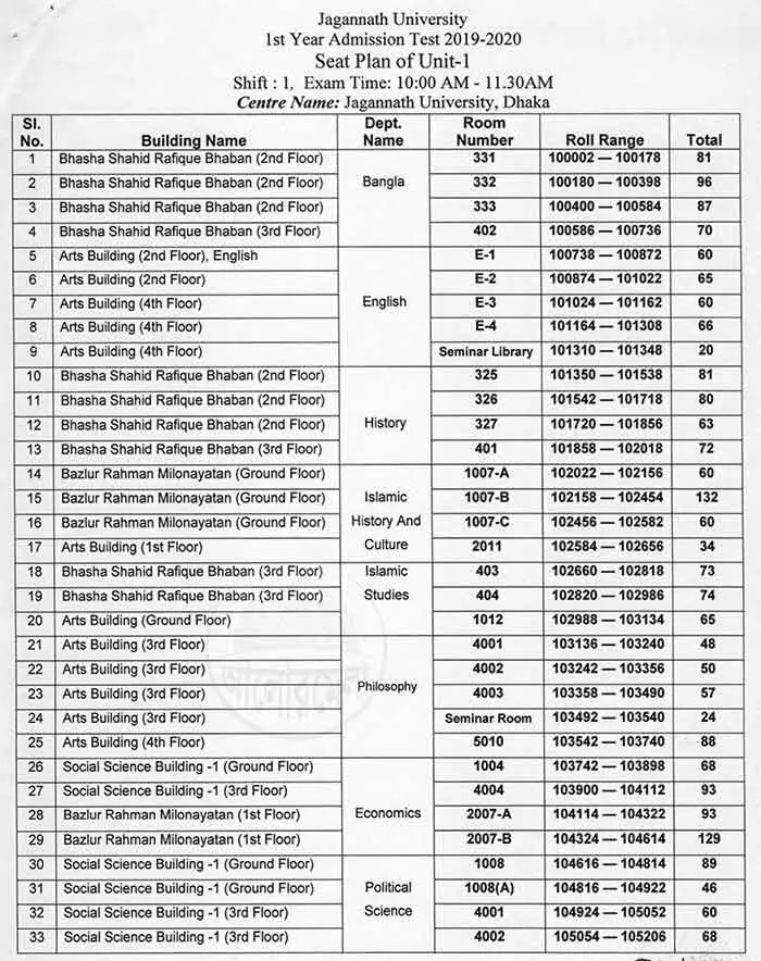 Admission test seat plan for "Unit- 2 & Unit-1" published already here. Jagannath University "Unit-3" seat plan also given below and others will be available after publishing by the JNU.