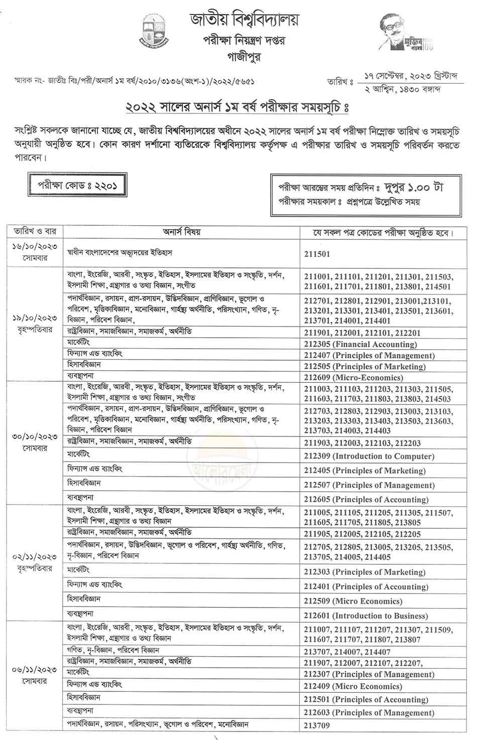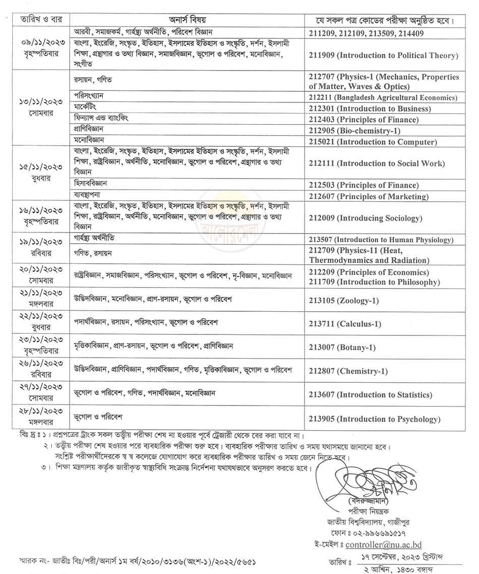 honours first year exam routine 2023 of national universityhonours first year exam routine of national university 2