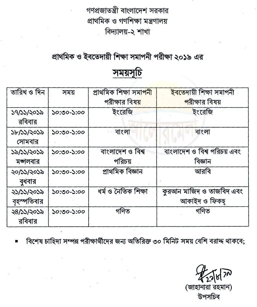 Exam Routine 2019: Primary Schools & Ebtetayee shomaponi or Final Exam Routine has been published on 22 August 2019. The final exam has been started from 17-11-2019 and end on 24-11-2019. This routine is also applicable for the students of madrashah (Ebtadayee).