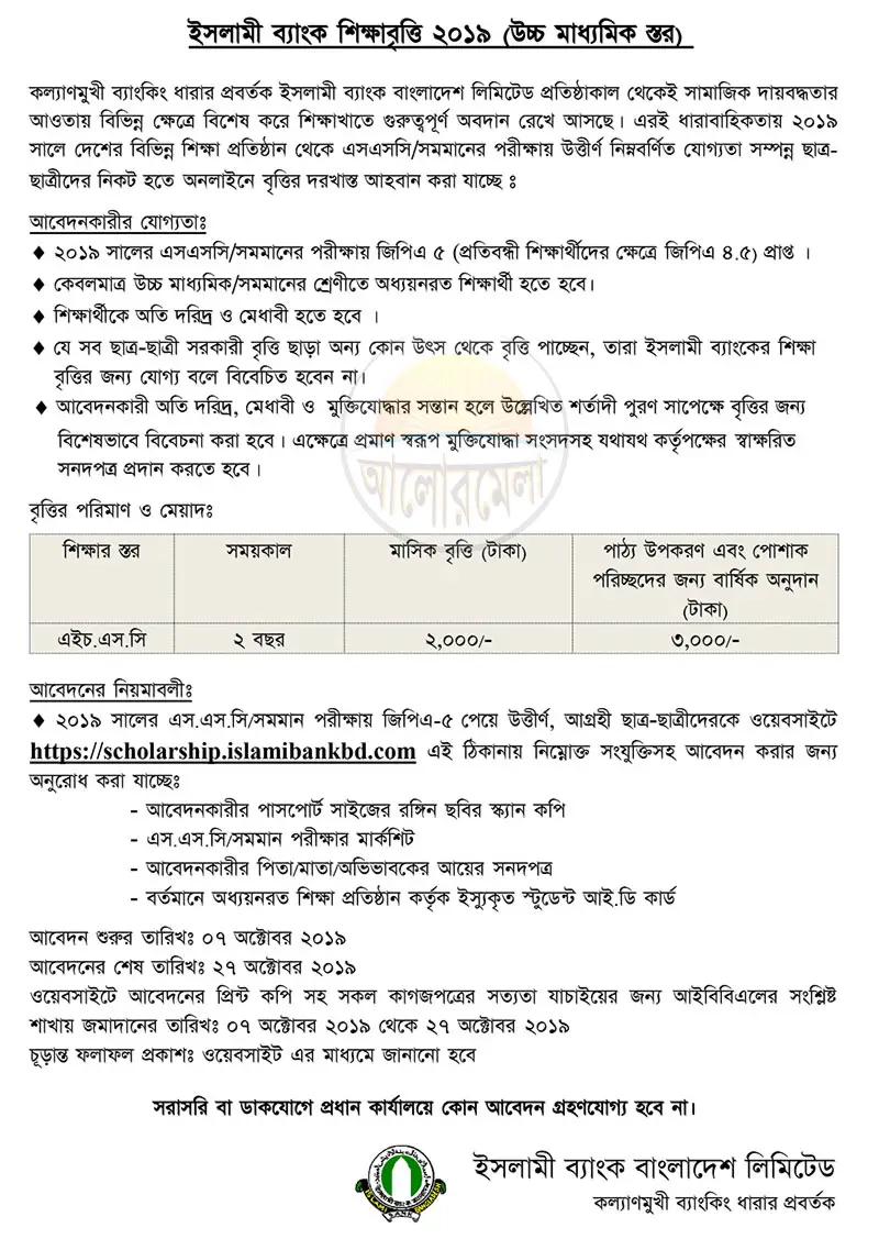 Islami Bank Bangladesh Limited has been working for education as a part of social liabilities from it's starting. Now again IBBL offers scholarship 2019 for poor and merit students.