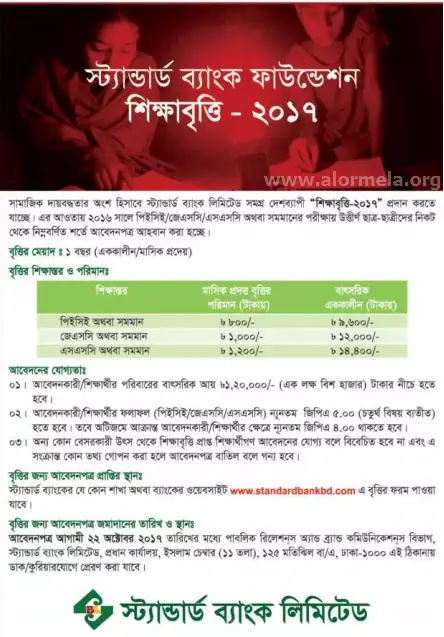 Standard Bank Limited is going to provide Educational Scholarship 2017 in the whole country as a part of their social liabilities. The students will eligible to apply who have passed Primary Somapony (PEC), JSC and SSC or equivalent exam in 2016.