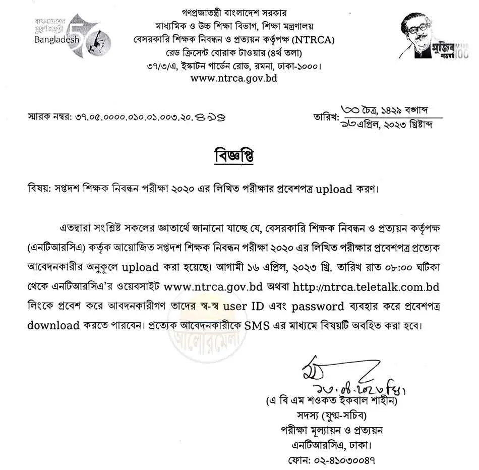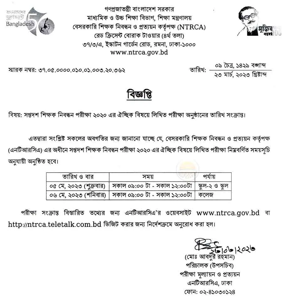 | NTRCA 18th teachers registration circular published | 02 November 2023 |