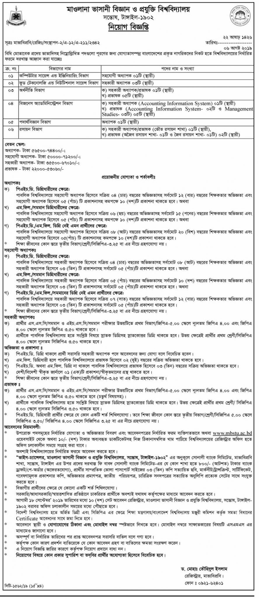 Mawlana Bhashani Science and Technology University has been called application from Bangladeshi candidates for various posts. Total posts are 27 position. Only eligible candidates can apply for this post.
