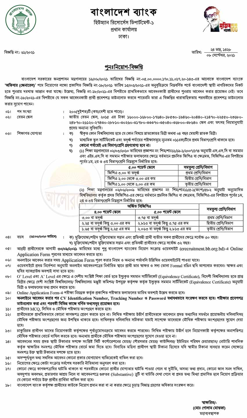 Bangladesh Bank Job Summary: