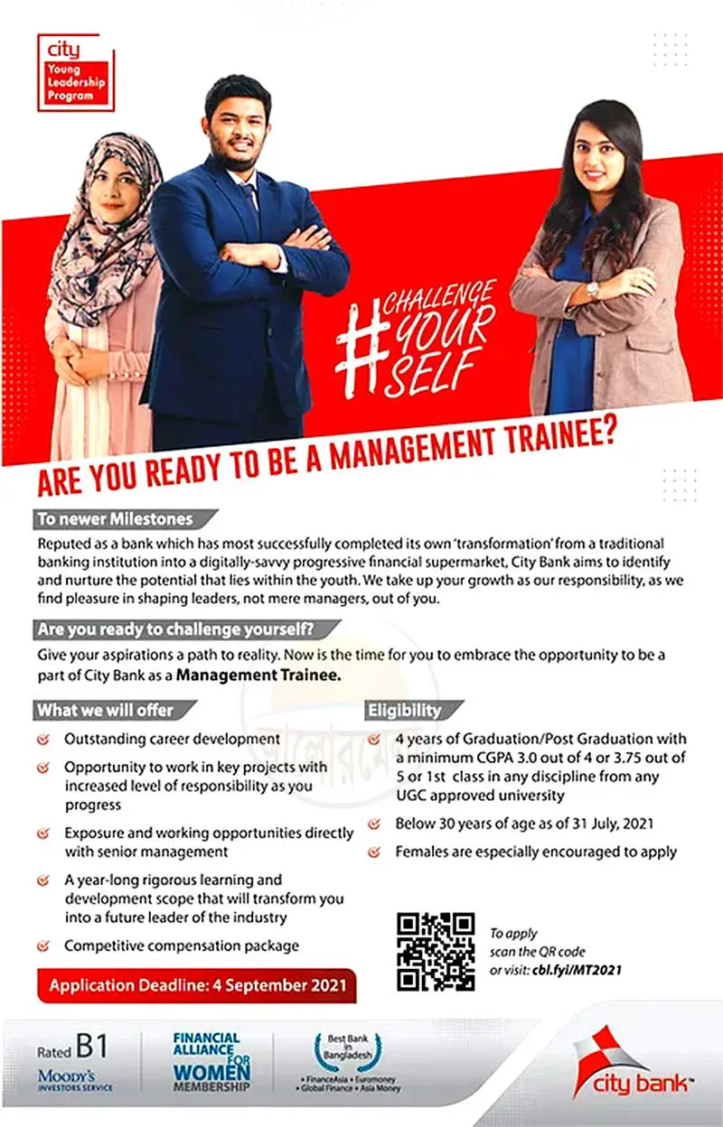 City Bank Limited has published a job circular for the posts of Management Trainee. Job location is anywhere in Bangladesh. Academic qualification minimum 4 years graduate degree or post graduation degree from any UCG aproved university.