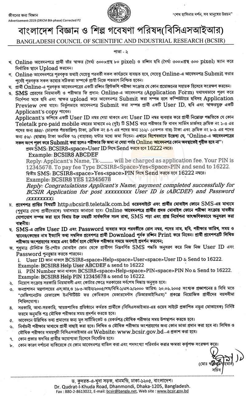 Application fee taka 445/- for the posts of Principal Scientific Officer, Senior Scientific Officer, Scientific Officer, 223/- taka for the posts of Technician, Junior Technician, Office Assistant cum Computer Operator, Driver and 112/- taka for the posts of Technician and 56/- taka for Lab Attendent and Security Guard. Application fee must be submitted 72 hours after successfully completed online application form.