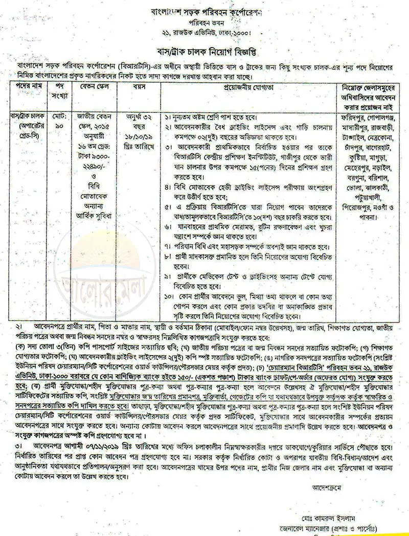 Bangladesh Road Transport Corporation BRTC is going to recruit some Bus/ Truck driver. Total vacant position are 90 posts.