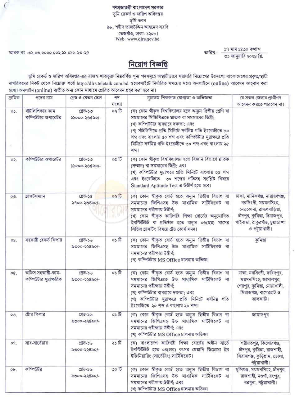 Land Record and Survey Department has called application from qualified candidates for the posts of Computer operator cum steno typist, Computer operator, Draft man, Assistant record keeper, Office Assistant cum Computer Operator and Data Entry/Control Operator, Surveyor, store keeper etc.