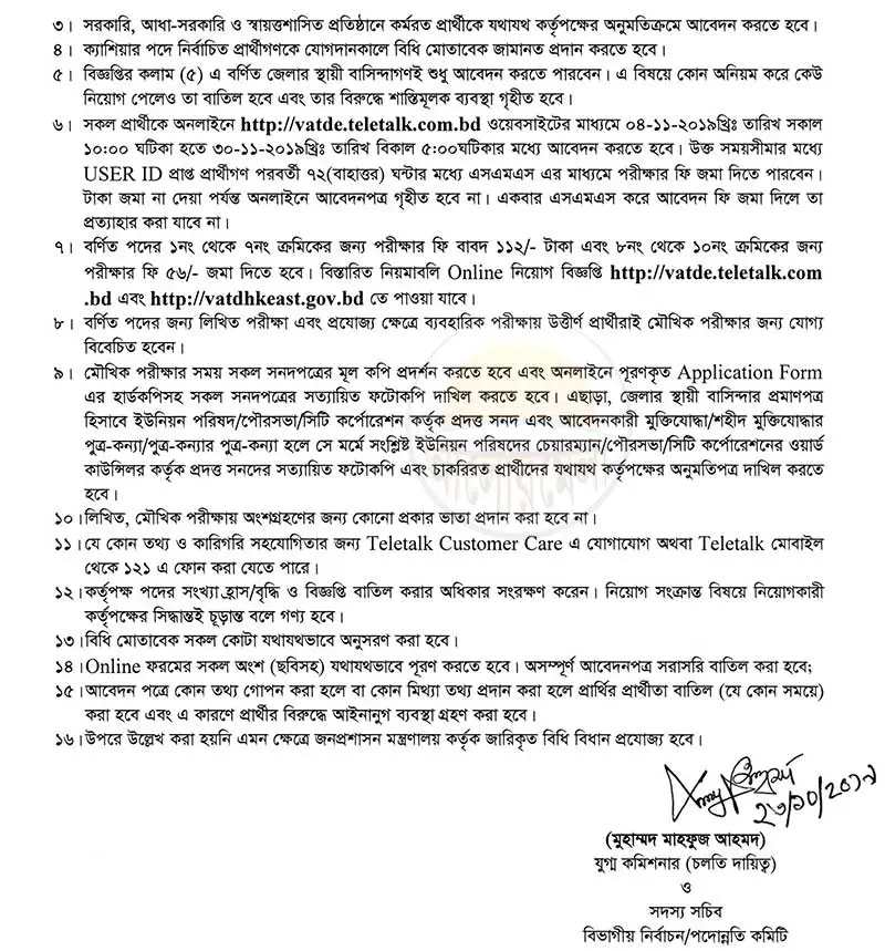 After successfully submitted online application form, applicants must be submit application fee from teletalk prepaid mobile.