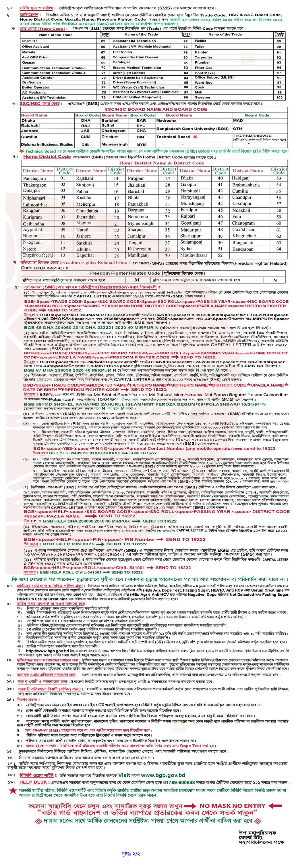 BGB<space>TRADE CODE<space>CANDIDATES NAME*FATHER'S NAME*MOTHER'S NAME*DISTRICT CODE*UPAZILA NAME*DATE OF BIRTH*FREEDOM FIGHTER CODE and send to 16222.