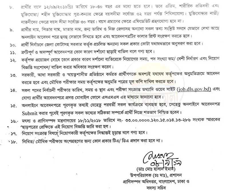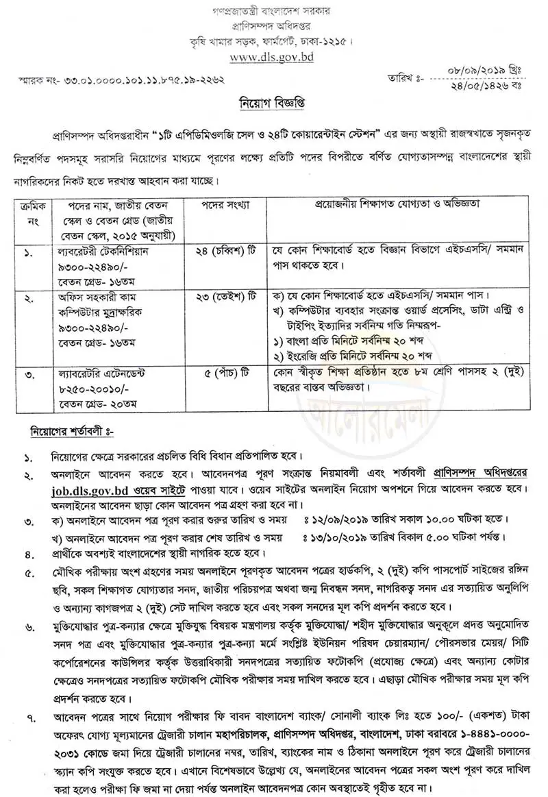 Department of livestock service (DLS), Farmgate, has published a circular for the posts of Laboratory Technician, Office Assistant cum Computer Typist, Laboratory Attendent, Compundar, Poltry Technician and FA. Total position are 52 posts.