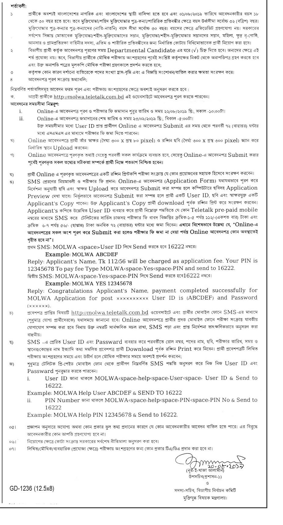 Otherwise application will be rejected. Application fee tk 112/- or 56/- must be send from teletalk prepaid sim.