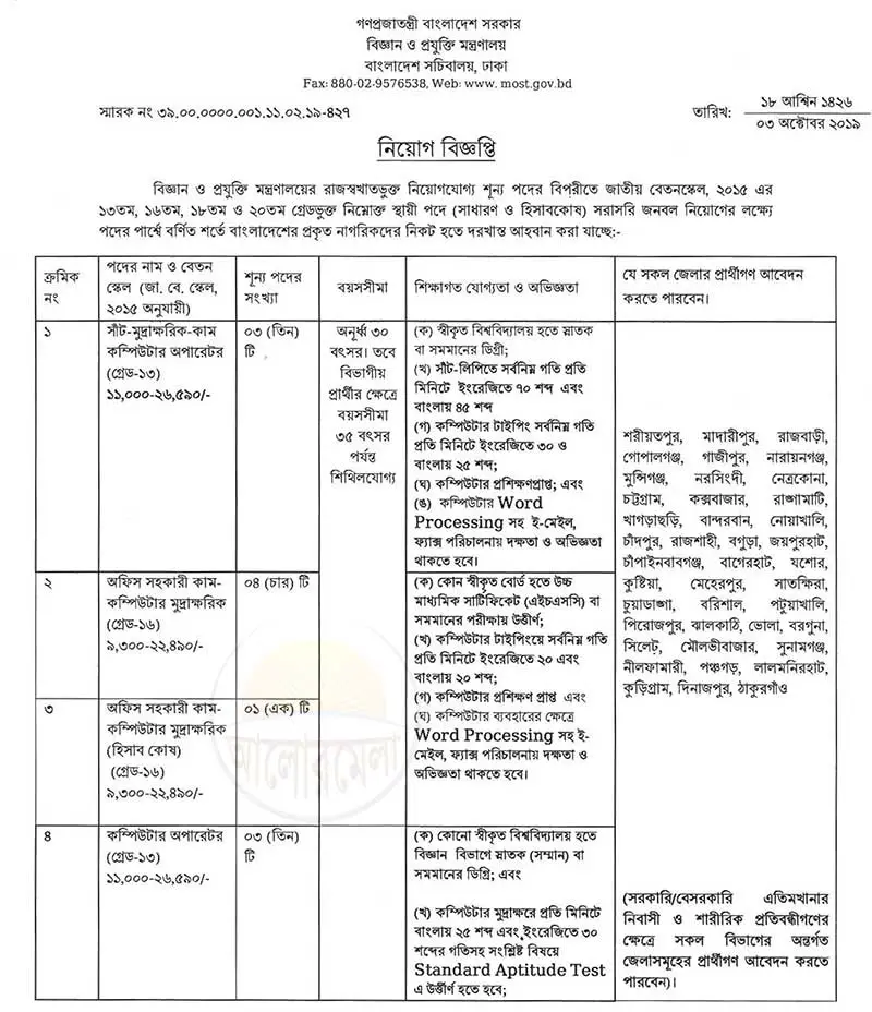 Bangladesh National Scientific and Technical Documentation Center (BANSDOC) of Ministry of Science and Technology, Bangladesh announced a job circular to recruit employee under 9th, 13th and 16th salary grade and they will be included in revenue section.