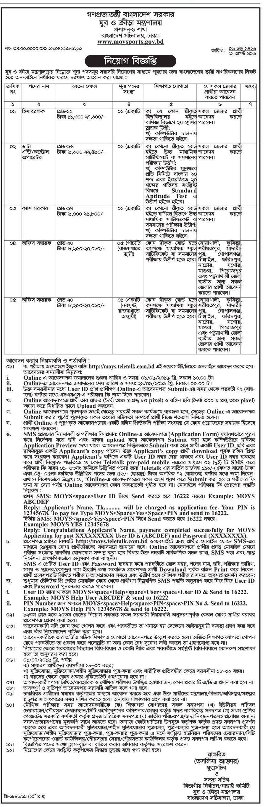 Ministry of Youth and Sports (MOYSports) has been called online application to recruit vacant posts directly. Only Bangladeshi candidates can apply for this post.