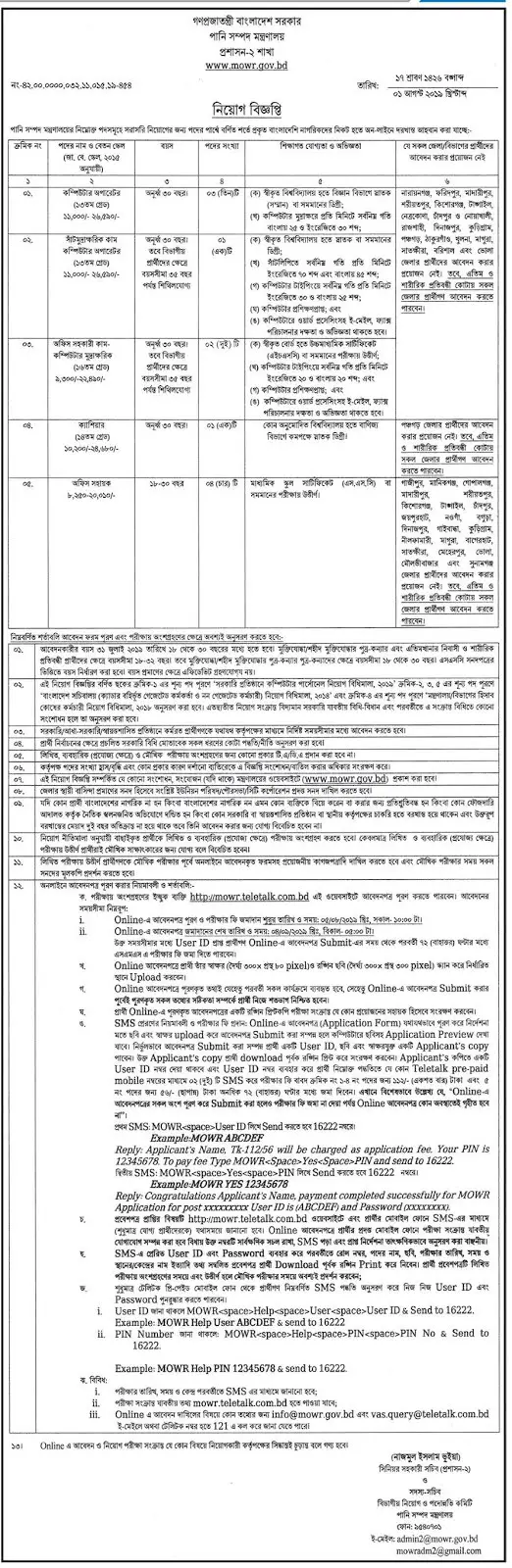 Ministry of water resource, Bangladesh published a job circular for the posts of Computer Operator, Steno Typist cum Computer Operator, Office Assistant cum Computer Typist, Cashier and Office Support Staff.
