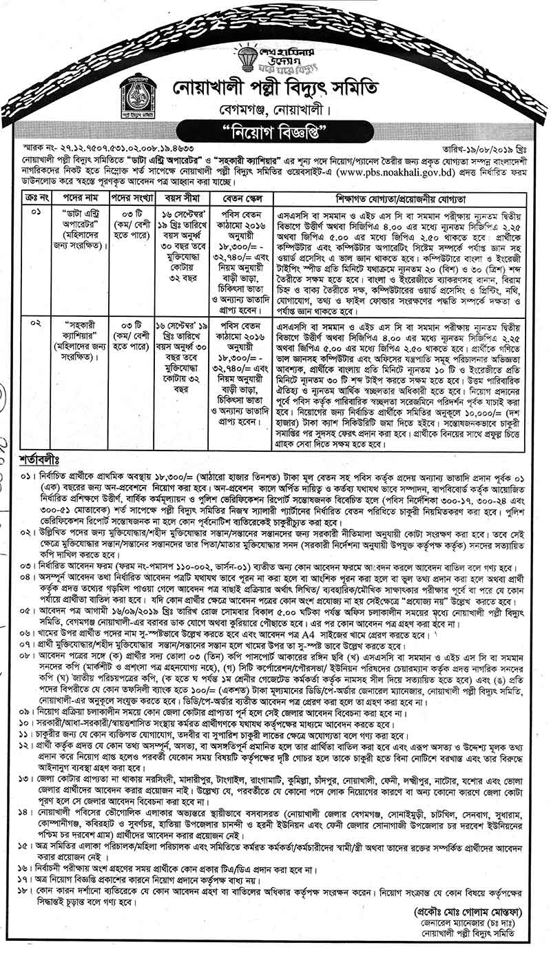 Application must be reached before 16 September 2019 to "General Manager, Noakhali Palli Biddyut Samiti-2, Bagumgonj, Noakhali" via post or Courier service.