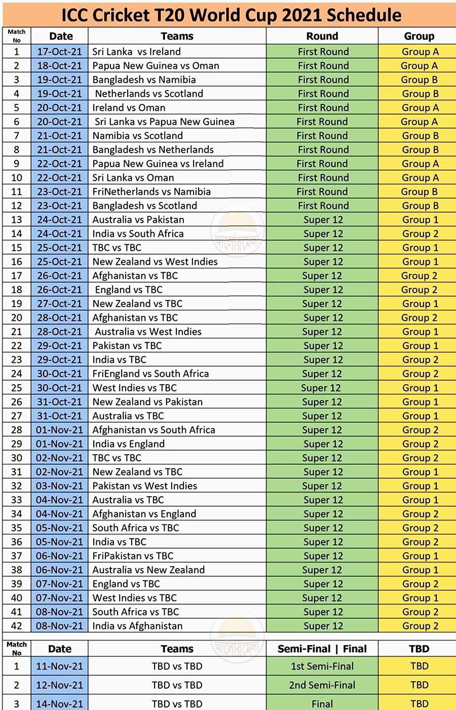 1st match will be Sri Lanka VS Ireland atOman Cricket Academy Ground, Muscat, Oman. Final Match wil be on 14 November at Dubai International Cricket Stadium, Dubai.